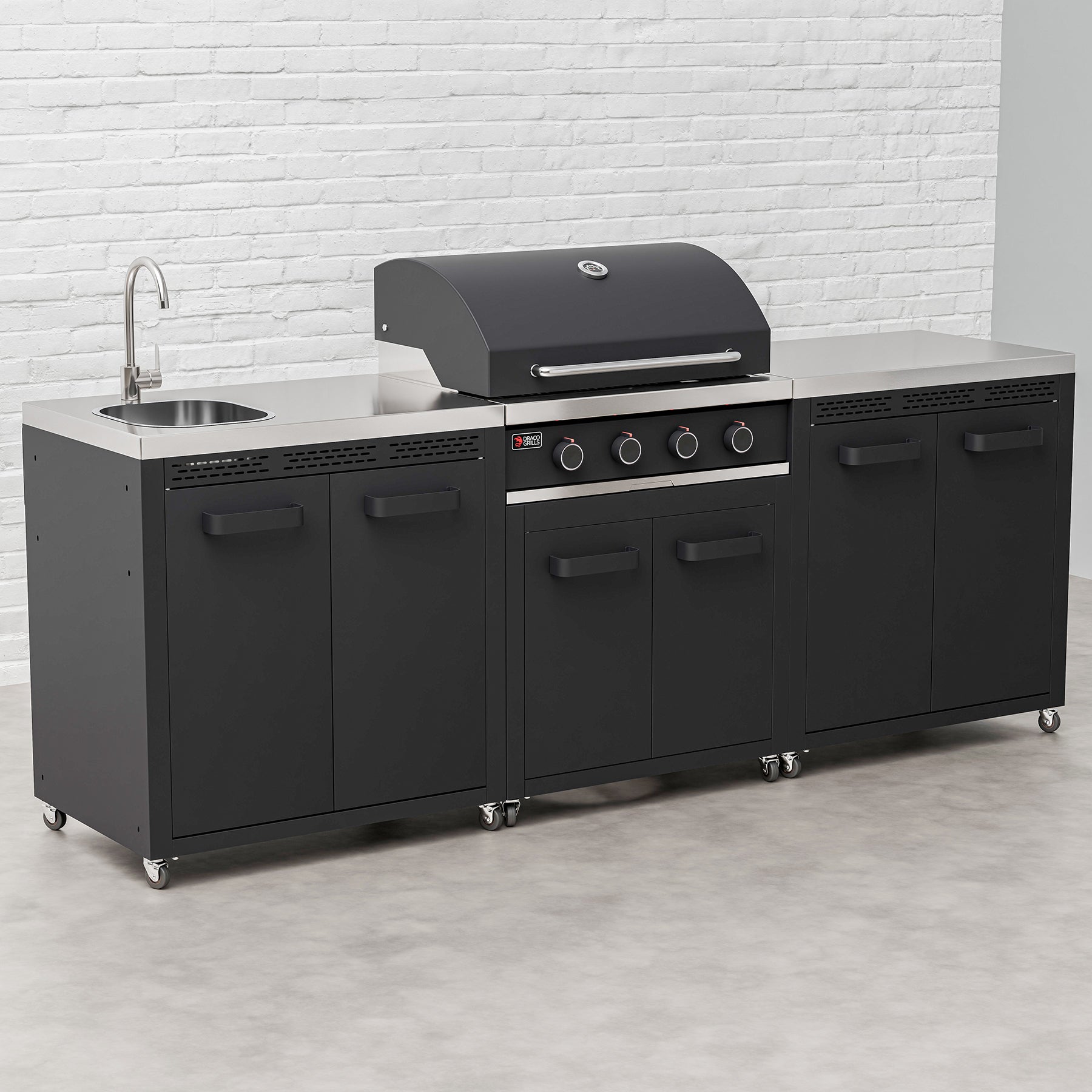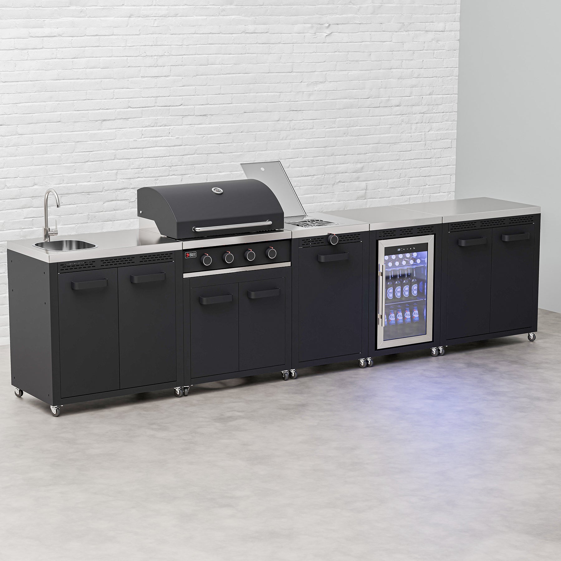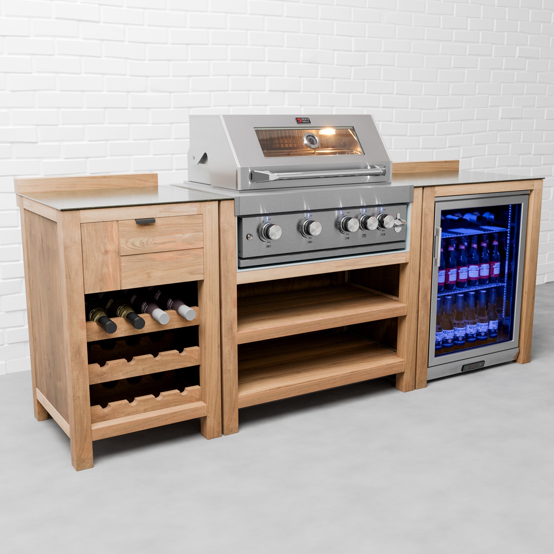 Priceop.com : draco grills teak 4 burner outdoor kitchen with modular sink and single fridge, mid june 2025 / with side panels Priceop.com : draco grills teak 4 burner outdoor kitchen with modular sink and single fridge, mid june 2025 / with side panels