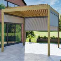 The premium Bracken Outdoors 3m x 3m Wood Effect Square Garden Pergola with round-cornered posts and double-layer innovative louvres will provide your outdoor area with outstanding shade. Its ultimate durability, effectiveness, and visual appeal make this contemporary wood-effect metal garden pergola possible. This covered pergola makes a perfect background for any event, from summertime al fresco dinners to leisurely evenings spent in the garden beneath the stars. Its chic style and superb craftsmanship make it ideal for outside eating while offering shade and sun protection. In addition to offering excellent sun protection, it can provide a respectable level of privacy for a variety of occasions, such as get-togethers with friends and outdoor yoga sessions. This is so that you may add personalised accessories to each of the four sides for even more seclusion. The gearbox of the pergola is located outside the beam. These add-ons include everything from screens to panels. Its exceptional UV-protected aluminium construction blocks harmful UV rays from the sun for you and your loved ones. The powder coating on this aluminium pergola is also weatherproof, offering a long lifespan and protection. You may pick between an open canopy that lets in lots of natural light and a closed, covered area with the tiltable double layer louvres that have a crank handle, so you can enjoy your garden rain or shine. The cleverly integrated drainage system allows water to filter out without opening the louvres. The tubes of the aluminium-framed pergola are penetrated by rainwater from the roof. Rainwater enters the pergola's horizontal structure, passes between its legs, and then descends vertically to the ground. The ingenious construction of this system ensures that water will never leak off your pergola gazebo. It will be necessary to carefully install this patio pergola, which we suggest doing with 2 - 3 people. It needs to be set up on a level, stable surface and takes about 2½ – 3 hours to assemble. Each pergola leg should be fastened to the ground using the provided fasteners. Three Textilene 3m blinds are also included. What's Included 1x Bracken Outdoors Gemini 3m x 3m Wood Effect Square Garden Pergola 3x Bracken Outdoors 3m Blinds Features 3m x 3m Square Pergola with Three 3m Blinds Assembly required (normally 2½ – 3 hours for 2 - 3 people) Weatherproof aluminium frame Exceptional double-layer louvred roof Waterproof powder coating Maximum Snow Load: Up to 60kg/m 2 UV protection Low maintenance Manually operated using a crank handle Built-in drainage system, great in heavy rain Weather resistant and strong durability throughout the year Dimensions Aluminium Canopy: 290.4cm x 290.4cm Post Size: 120mm x 120mm Full Height: 250.3cm Height (floor to beam): 233cm Length: 296.4cm (including base plates) and 266.4cm (excluding base plates) Width: 296.4cm (including base plates) and 266.4cm (excluding base plates) Blind: 268.7cm x 234cm . Bracken Outdoors Gemini 3m x 3m Square Wood Effect Aluminium Garden Pergola with Three 3m Blinds, Mid May 2025