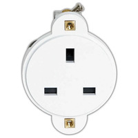 North/South fixing orientation. Shuttered for safety. Two M3.5 FixingsVoltage: 220-250V Current: 13A Fixings: 2 x M3.5 Dimensions: 72 x 53 x 35mm Weight: 60g. This white 13A socket outlet is used mainly for stage lighting dimmer outlets in the UK including the Robolights Smartsocket system. This 13A / 230V AC socket is moulded in heat resistant thermosetting material and has safety shutters to cover the live and neutral terminals when not in use.. 13a socket