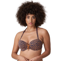Create a fun and stylish look with this balcony bikini top from the Punta Rata collection by Prima Donna. The jacquard fabric creates a modern look, ruched in the centre to create a curve enhancing look. The sweeping sweetheart neckline meets in the centre for a rope inspired bow with golden stoppers that don't get hot in the sun! This neckline highlights your perfectly uplifted bust thanks to the firm padding within the bra, and the flawlessly installed underwiring that still ensures a comfortable fit. The straps are adaptable meaning they can be changed to a racerback, so you can style the piece however you wish.