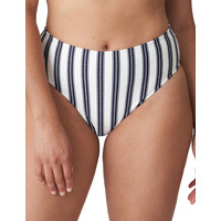 This brief comes from the Leros collection by Prima Donna, a nautical inspired range. Vertical stripes create a slimming effect yet also offer a curve enhancing style to your derri re. This brief offers full rear coverage, coupled with elasticated leg holes it creates the perfect secure, yet comfortable piece, without any tight hugging places. It is styled high waisted and with high leg cuts to create a glamorous tall and elongated look.