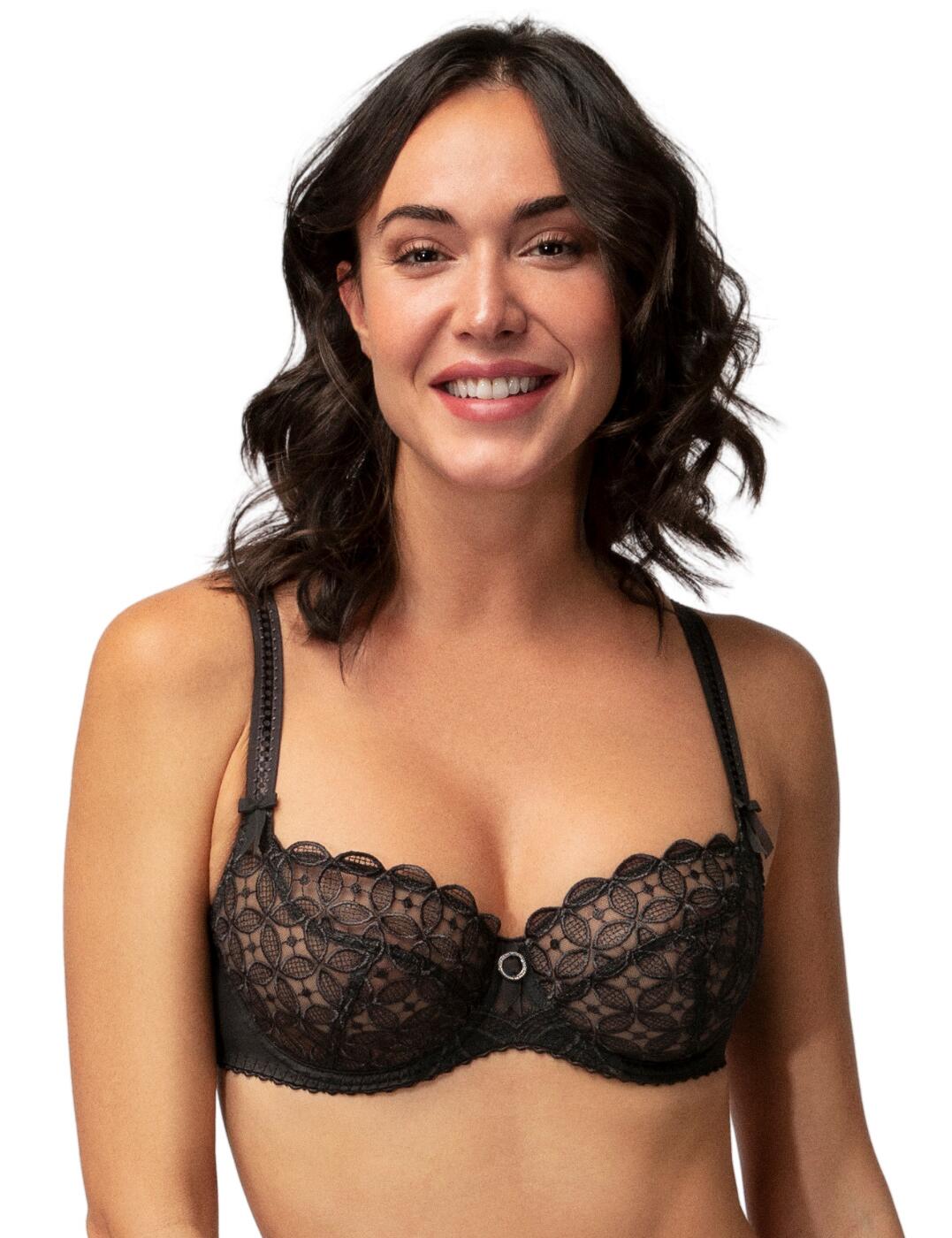 Create a chic and luxurious everyday lingerie look with the Channing range by Marie Jo. This padded balcony bra provides good coverage with underwiring which ensures an irresistible look that showcases your gorgeous cleavage. The bra is covered in a checked lace that is opaque at the cups with a luxurious X charm at the straps. It allows for an individual feel with a mini hook and eye closure and adjustable straps. Coordinating pieces are also available for a fully matching timeless look.
