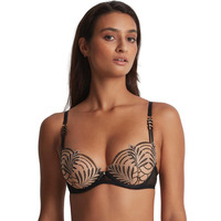 Showcase your assets with this stunning moulded push-up bra from Aubade's luxurious Hypnolove collection. Padded and underwired for the utmost support and uplift creating a beautiful silhouette and cleavage. This piece also features a classic hook and eye fastening and adjustable straps with gorgeous detailing on them for an elegant and secure fit to all your natural curves. Feminine embroidery and timeless dot details are crafted onto this sophisticated design for that perfect finish. To complete this set, take advantage of the matching coordinates available from the Aubade Hypnolove range.