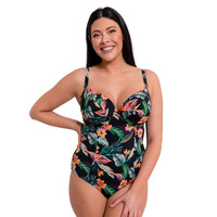 Get ready to make a splash with the Curvy Kate Cuba Libre padded plunge swimsuit! The bold tropical print is a fashion-forward choice, combined with the plunging neckline for a fun and flirty exotic vibe that is effortless. The padded cups and underwiring offer plenty of support, and the adjustable multiway straps make this an excellent choice for those wanting both style and comfort! Plus, you'll feel as secure as can be in the full rear coverage. The whole Cuba Libre range is made from durable, recycled materials, making this a more environmentally friendly choice too!