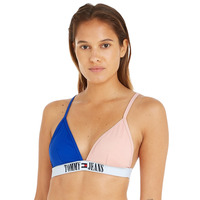 Get ready for your next trip away with the all-new Tommy Hilfiger triangle bikini top. With iconic 90's styling featuring block coloured cups, it's sure to be a statement piece every time you sport it. The plunging neckline flatters your figure perfectly and ensures that you can show off your best assets. The elasticated underband has the classic Tommy Jeans logo that adds an extra touch of designer appeal. With no wiring, removable padding and adjustable shoulder straps, you ll never worry about any wardrobe malfunctions! And if you are in need of a matching coordinate, there is just the one available for a complete look that will turn heads wherever you flaunt it this season!