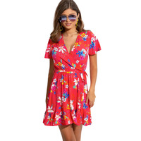 The ultimate season essential has arrived for people who crave comfort and amazing style. Pour Moi creates this beautiful beach dress that is going to be your go-to all season long. With fluted cap sleeves, a flattering V neckline and mid thigh length create that modern yet timeless design. Designed with your utmost satisfaction in mind, the Pour Moi wrap beach dress boasts a fixed wrap design with a removable waist tie, allowing you to effortlessly adjust it to your liking. This design has enchanting floral patterns that adorn this piece creating that eye catching look you are looking for this season. So snap yours up today for that perfect getaway ensemble.
