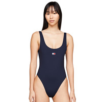 Discover the epitome of summer elegance with the Tommy Hilfiger TJ Heritage swimsuit. Designed for those who prioritise both comfort and style, this swimsuit eliminates the need for underwire and padding, offering a beautifully simple and comfortable fit. Featuring a chic scoop neckline and minimalistic design, it ensures you'll radiate confidence and sophistication. Made from superior stretch fabric, it promises to offer unmatched comfort while moving with you. The centrally placed iconic Tommy Jeans logo adds a hint of luxury, while the stunning scoop back design and high-cut leg style accentuate your curves and showcase your back perfectly. With medium rear coverage, it's the ideal mix of modesty and allure. Upgrade your swimwear collection and make a statement by the pool or beach with this standout piece.
