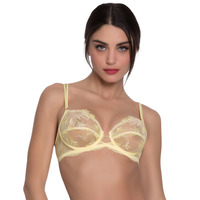 Indulge in luxury with the Lise Charmel Frisson D'or full-cup bra. Crafted with the finest materials, this bra offers full coverage and support with its non-padded, underwired cups. The sheer cups feature multi-thread embroidery for a touch of femininity and sensuality. Double spaghetti straps, adjustable for comfort, along with a gold ring and a central charm, add opulence and sophistication. Designed for the modern woman, the Frisson D'or bra also ensures comfort with a mini hook and eye closure. Elevate your lingerie collection with this stunning piece.