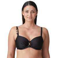 Exude style and confidence on your next holiday with this bikini top from Prima Donna's luxurious Barrani range! The subtle sheen of the fabric creates an opulent vibe that has to be seen to be believed; you'll feel wonderfully chic and trendy! The full cup coverage, underwiring, adjustable straps, and plastic clasp closure on the back ensure you can enjoy security and comfort while still looking fabulous. The decorative tortoise ring and metallic details on the right strap and between the cups add an eye-catching flourish that elevates this piece even further! Complete the look with matching bikini bottoms from the Barrani range.