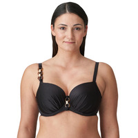 For an effortlessly stylish vibe on your next trip to the beach or pool look no further than this luxurious balcony bikini top from Prima Donna's Barrani range! A balcony neckline is wonderfully flattering for all body types, and the subtly padded mousse cups combine with the underwiring to enhance and compliment your curves, showing off your cleavage and creating a gorgeous look that celebrates your figure. Decorative tortoiseshell and metallic gold elements on the strap and between the cups add a distinctive flair to this bikini top that will have you standing out from the crowd for all the right reasons! Adjustable straps and a plastic back clasp closure give you the comfort, confidence, and individualised fit you deserve. Pair with coordinating bikini briefs from the Barrani range to complete the look!