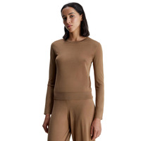Get ready to elevate your loungewear game with the Calvin Klein fine knit lounge top. Crafted with a luxurious lyocell stretch blend, this top offers the perfect combination of comfort and style. With its slightly sheer finish, the Calvin Klein fine knit lounge top adds a touch of allure to your laid-back look. It's the perfect balance between casual and sophisticated, allowing you to effortlessly transition from a lazy weekend at home to a quick coffee run with friends. The crew neckline and long sleeves offer a classic, timeless silhouette that flatters any body type. The rib-knit collar, cuffs, and hem add a touch of texture and visual interest to the overall design.