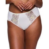 Discover the mesmerising allure of Prima Donna's full briefs from the Novaro range. Offering luxurious comfort with its high-waisted fit and full coverage design, ideal for all-day wear. Sheer lace panels of floral embroidery, scalloped waistband and an opaque polka dot centre combine to create a sensual style. These briefs are designed to be seamless, ensuring they remain invisible beneath your clothing. Pair with matching items from the Novaro range to elevate your look further!