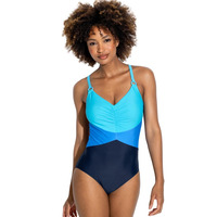 Look your best at the beach in this v-neck tummy control swimsuit from the Brighton collection by Pour Moi. This gorgeous swimsuit brings a chic look with block coloured sections throughout creating a fun design whilst made complete with elegant ring details at the straps. It has a v-neckline that features enhancing padding with a natural fit thanks to the wireless style whilst the gathering detail on the cups also subtly enhances your cleavage. The front flatters your curves beautifully thanks to the tummy control panel and medium rear coverage. It guarantees a perfect fit with an easy pull-on style and adjustable straps. Feel confident and empowered at the beach today with this gorgeous swimsuit!