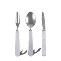 Tried and tested this folding cutlery set is ideal for camping and recommended by the Duke of Edinburgh&8217;s Award. The folding cutlery is part of the stainless steel range which is durable and comes in a variety of options. The folding set also includes a clever folding bottle opener on the spoon and a tin opener on the fork and all packs away into a hygienic pouch.Made from food grade stainless steelIncredibly strong and corrosion resistantSupplied with pouchDuke of Edinburgh recommended kitFrom Lifeventure