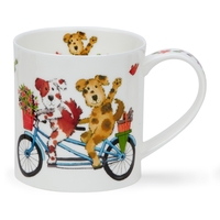 Demonstrating the perfect day out two dogs joyfully sit atop their bright blue bicycle with baskets of bones and flowers whilst on the back of the mug a little trio of dogs pack their bags and take a trip in their bright red car.Dunoon fine bone china mugs are handcrafted in Staffordshire England.They are produced to the highest quality using traditional methods which have been developed and refined over 3 family generations in the pottery industry.Orkney is a modern straight sided mug which lends itself to contemporary patterns. It has a strap handle making it very comfortable to use.
