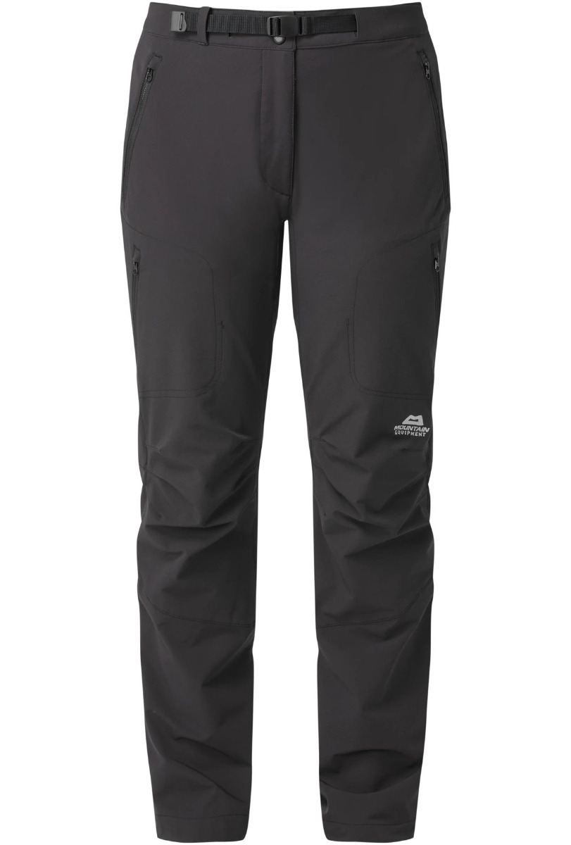 Mountain Equipment's signature all-purpose mountain softshell pants are intended for hill walking mountaineering and alpine climbing. They provide wind and weather resistance with exceptional durability.Features:Materials:Midweight EXOLITE softshell fabric is wind and water resistant tough and stretchyMain fabric: EXOLITE 210 double weave soft shell (210g m-2)Patterning & Design:Uses our Alpine Fit for complete freedom of movement with no excess fabricGusseted crotch for an unrestrictive fitPocket Configuration:2 zipped hand pockets provide storage for snacks and accessories2 zipped thigh pockets with mesh lining to provide additional airflow and venting for improved comfort1 rear zipped pocket for storage of small itemsZip & Fly Configuration:2-way fly for ease of use with a harnessWaist & Hem Construction:Waistband is lined with a microfleece for increased comfortIntegrated low-profile belt sits neatly under a pack or climbing harnessDouble press-stud waist closureZips at the ankle with an internal gusset accommodate a wide variety of bootsDrawcord channel at hem (drawcord not included)Further Features:Designed and developed in the UKBuilt to last. Backed up by our Product Lifetime GuaranteeMountain Equipment is a member of the Fair Wear Foundation