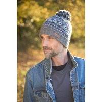 A traditional fair isle pattern on a timeless grey base this 100% wool bobble beanie has a warm fleece lining around the forehead and ribbed roll back.Pachamama Men's Westport Bobble Beanie in Blue. A striking fair isle pattern on a cool grey base. Fair trade and handmade in Nepal.100% WoolFleece Lined around the foreheadFair Trade and Handmade in Nepal