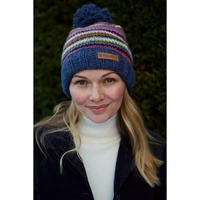 Inspired by the colourful skies of Denver these multicoloured stripes are set against the classic denim blue.Pachamama Denver Stripe Bobble Beanie - A denim striped design in 100% Wool. Fleece lined around the forehead. Fair trade and handmade in Nepal.100% Wool OuterFleece Lined around the foreheadFair Trade and Handmade in Nepal