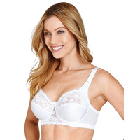 The Rose bra by Miss Mary of Sweden is perfect for daily wear, this bra is extremely comfortable while offering great support and chic style. The 2-panel cup design offers great lift and forward projection giving you a natural shape and comfortable support. A supportive side sling keeps breasts centre. The full cup coverage offers comfortable support allowing you to move freely. This gorgeous design exudes femininity. A luxurious smooth satin panel offers additional support and a glamourous look. Flirty semi-sheer floral lace adorns the cups and bridge of the bra for a timeless look.