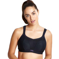 The Sports Bra by Panache Lingerie has been designed to reduce breast bounce by up to 83%.The Panache sports bra offers the ultimate support for any sport. A favourite due to its supreme support and comfort whilst exercising. The fashionable and stylish sports bras has lightly moulded cups to reduce friction, and is the first non wired Sports bra that Panache has designed. The non wired bras has been designed to offer excellent support without the need for the additional underwired support. The sports bra keeps moisture away from the skin with a breathable mesh to keep the body cool during exercise, with adjustable padded shoulder straps and fastens with three hooks at the back across three columns. The bra comes with the option to change the sports bra to a racerback with the J-Hook Feature.