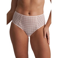 Experience ultimate luxury with the Jereme full brief by Marie Jo, a perfect addition to any wardrobe this season. This high-waisted brief provides full coverage all around for a flattering, seamless silhouette while showcasing sheer checkered fabric for a touch of allure. Embrace unparalleled comfort, elegance, and sensuality with the Jereme collection by pairing the briefs with one of the matching coordinates available separately.