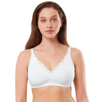 Ladies, discover the perfect combination of comfort and style with the Triumph Amourette wireless minimiser bra. This bra features moulded cups with zero padding, for a natural and flattering look. The wireless design ensures maximum comfort, allowing you to move freely without any discomfort. The plain opaque cups create a seamless look, perfect for wearing under your favourite tops and for an added touch of femininity, there is delicate lace at the neckline and back band. The elastic shoulder adjustable straps and V-slides provide extra support and ensure that your bra stays in place all day long. Plus, the soft 4-row hook and eye closure allows for a personalized fit. With matching Amourette lingerie also available, what's not to love?