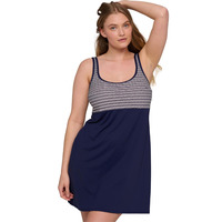 Why not upgrade your beachwear wardrobe with this luxury swimwear dress from Prima Donna's Kalba range? Its easy pull-on style and sleeveless non-adjustable strap design make it perfect for a day at the beach or a simple but stylish summer dress. It sits mid-thigh and has a scooped neckline front and back for an elegant touch. Wear this over some of Prima Donna's coordinating swimwear pieces to complete this stunning ensemble.