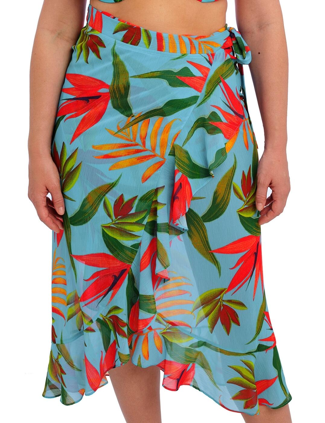 Elomi's Bazaruto range introduces this gorgeous flattering beach top that is perfect for anyone that wants a little more modesty to their overall swimwear look. This beach top has a plunging neckline and an easy-to-wear tie front that can be altered to fit your amazing curves. This piece has loose-fitting sleeves for the utmost comfort. This design also features soft hemmed edges to give a less bulky look. This chic top has a unique distinctive pattern that is recognisable to the Bazaruto line by Elomi. Pair with any of the matching coordinates available.