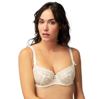 The beautiful Romy collection by Empreinte will add a touch of luxury to your everyday lingerie. This elegant bra boasts a modest balcony style coverage and the semi-sheer lace section highlighting the cleavage adding a seductive finish. Underwiring offers support without uncomfortable padding. Pair with flirty coordinates from the Romy collection by Empreinte.