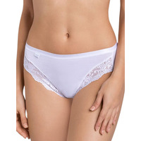 These Romance Tai briefs combine the well-known Sloggi comfort with some gorgeous lace details. With lace inserts at the front along the hips, what's not to love? The tai brief style still gives you plenty of coverage to go under any outfit with a mid-rise waist and full rear coverage. Made complete with the Sloggi tag at the hip.