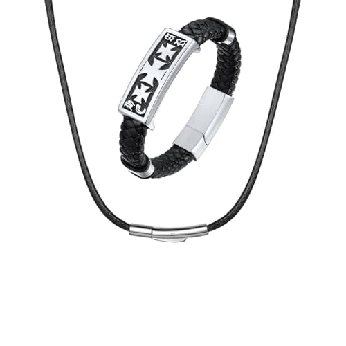 ChainsHouse Mens Black Braided Leather Wristband Stainless Steel Templar Cross and Leather Necklace Cord with Clasp